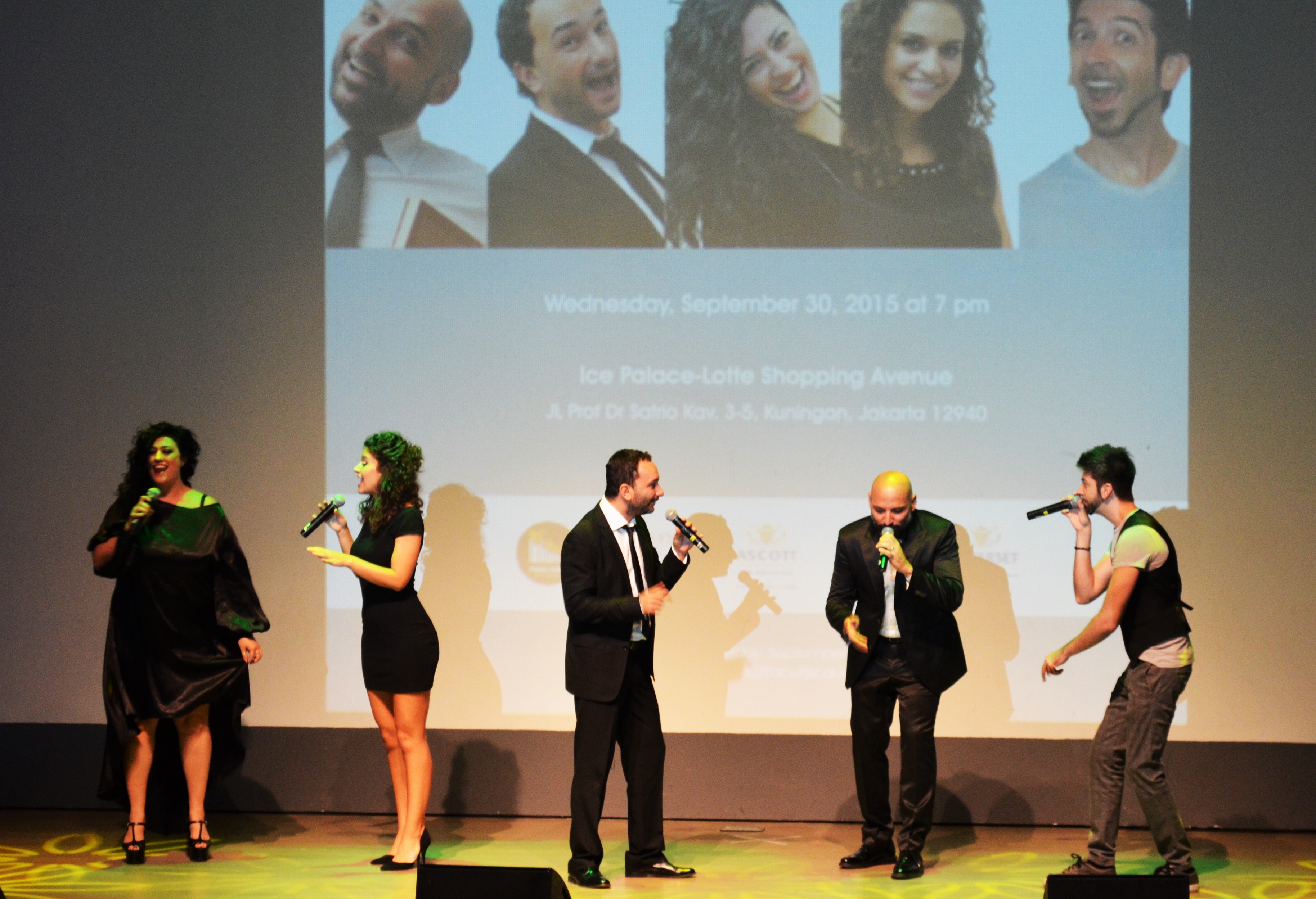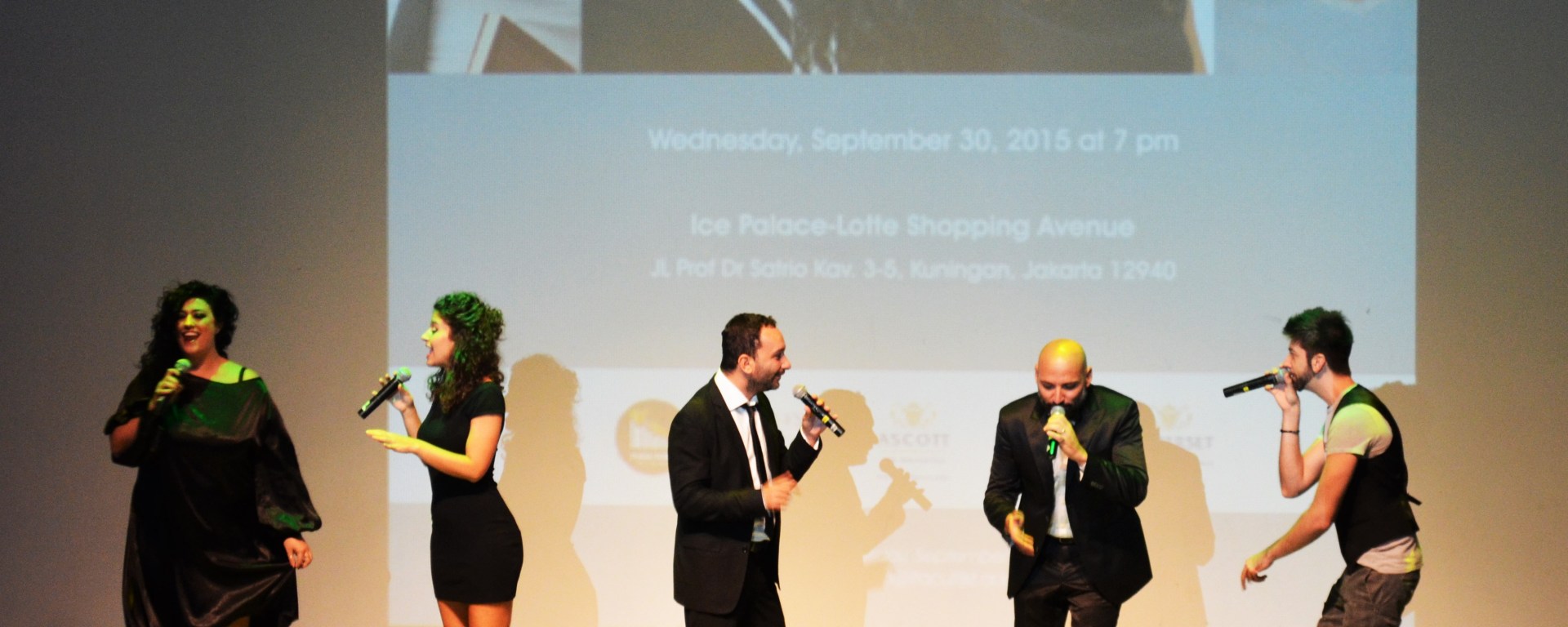 The Italian a capella group of five, Mezzotono, performed in front of the public audience they claimed to be the greatest under the concert title “The Mezzotono Show” in Ice Palace hall, Jakarta, 29 September.