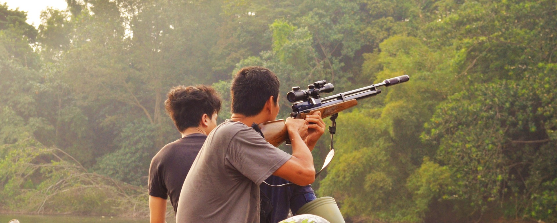 From the opposite distance, the men on the hovering motorboat set watchful eyes with air rifles pointed forward in search of animal sightings. This place, after all, is not a natural reserves. No one was reserved about killing beings.