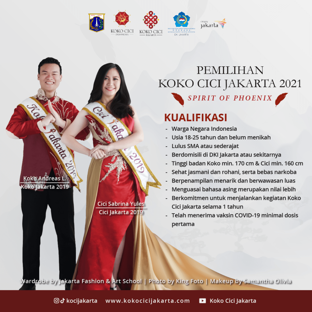 Kini, di tengah pandemi COVID-19 masih mendera, namun menimbang penurunan kasus harian di DKI Jakarta pada khususnya, Pemilihan Koko Cici Jakarta 2021 kembali diadakan, dan mengambil tema Spirit of Phoenix.