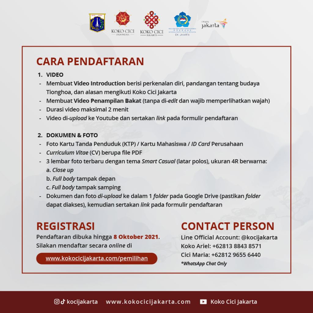 Dengan demikian diharapkan Koko Cici Jakarta sebagai duta budaya Tionghoa, duta pariwisata dan duta sosial di DKI Jakarta dapat membangkitkan semangat menyongsong hari yang indah.