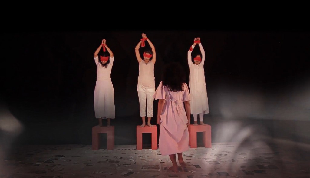 Dalam pertunjukan Kala Teater disutradarai Shinta Febriany, keberadaan tubuh-tubuh yang hidup dalam derita dan masa lalu direpresentasikan dengan tubuh yang artistik. Penonton seperti diajak memasuki dunia yang lain. Ruang putih dengan aktor-aktor berbaju putih, bertopeng merah dan kacamata hitam, lontaran dialog diucapkan dengan verbal dan stilisasi gerak—tubuh yang jatuh bangun, gerak-gerak kecil tangan dan kaki, memainkan kursi–memberikan impresi tersendiri yang unik tanpa kehilangan emosi kepedihan yang juga terasa kuat: berbicara tentang interogasi, perempuan-perempuan yang digantung, penyiksaan Pedro di penjara, seorang anak yang kehilangan ayah di penjara atau istri yang menunggu suaminya pulang atau mati.